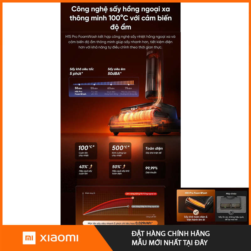 Khác với các công nghệ sấy thông thường chỉ làm khô bề mặt, Dreame H15 Pro FoamWash sử dụng công nghệ sấy hồng ngoại kết hợp khí nóng để:
