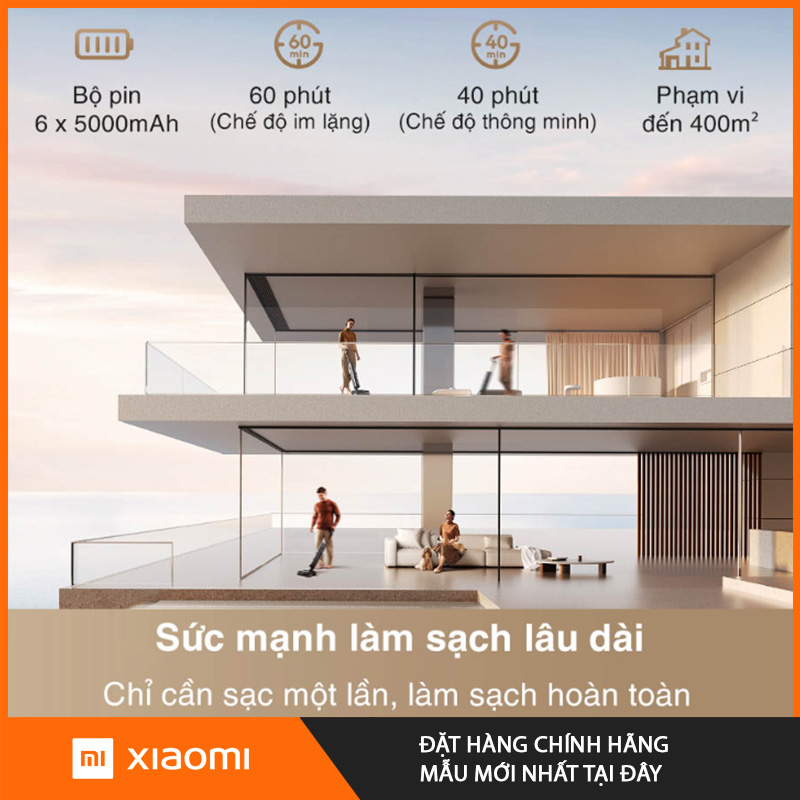 Công nghệ pin tiên tiến còn giúp duy trì hiệu suất ổn định đến cuối chu kỳ pin – không xảy ra hiện tượng giảm lực hút khi gần hết pin. Thời gian sạc đầy khoảng 4 tiếng, phù hợp với chu trình vệ sinh hàng ngày hoặc 2-3 lần/tuần trong các hộ gia đình.