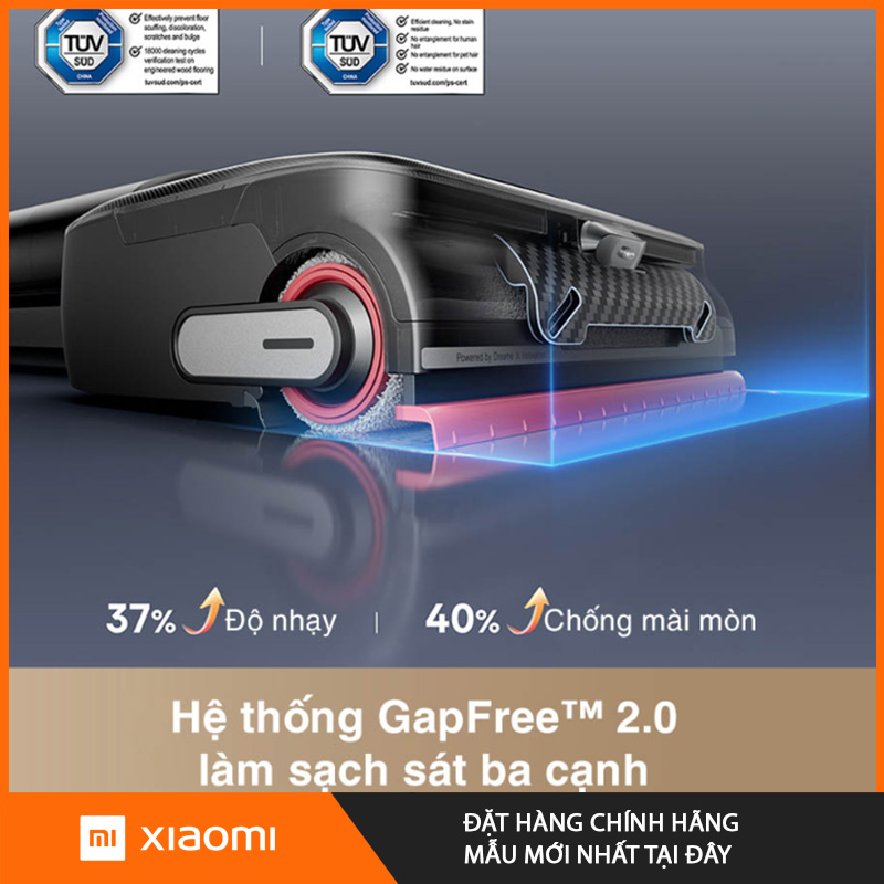 Ở phiên bản H15 Pro, công nghệ GapFree™ 2.0 đã được cải tiến mạnh mẽ so với các đời máy trước. Đây là hệ thống thiết kế con lăn quét mở rộng sát cạnh thân máy, chỉ còn cách mép khoảng 2mm. Điều này giúp máy có thể: