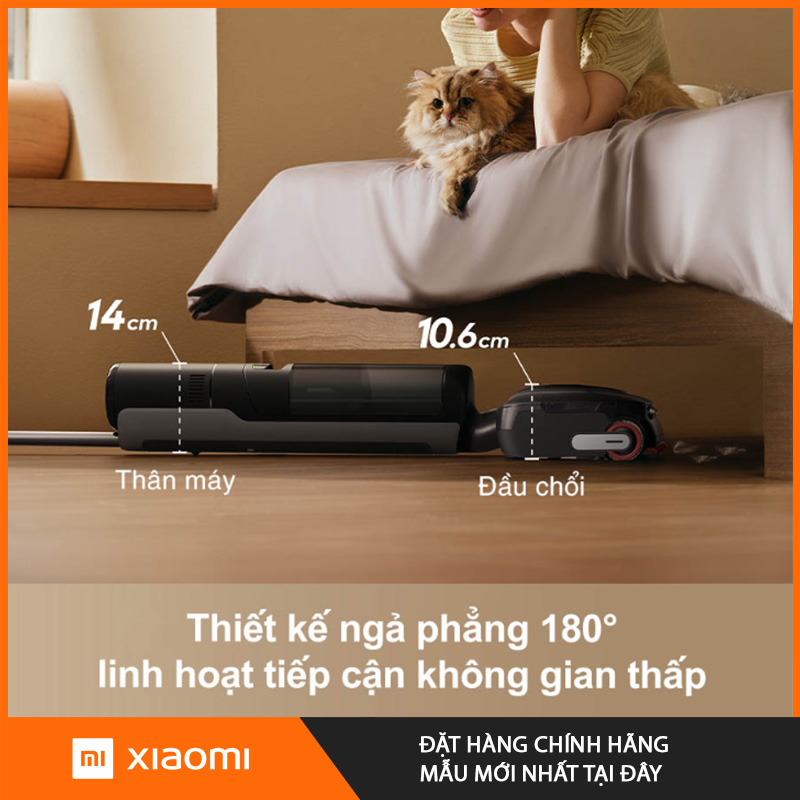 Một điểm cộng lớn khác của Dreame H15 Pro FoamWash là khả năng ngả phẳng 180° toàn bộ phần tay cầm và đầu hút, cho phép tiếp cận các không gian cực thấp như: