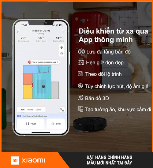 Với khả năng kết nối và điều khiển từ xa qua ứng dụng Roborock, người dùng có thể dễ dàng cá nhân hóa các chế độ làm sạch của Q5 Pro theo nhu cầu của mình. Ứng dụng cho phép bạn tùy chỉnh lịch trình làm việc, thiết lập các khu vực cụ thể cần làm sạch, hoặc cài đặt các vùng cấm để robot không đi vào.